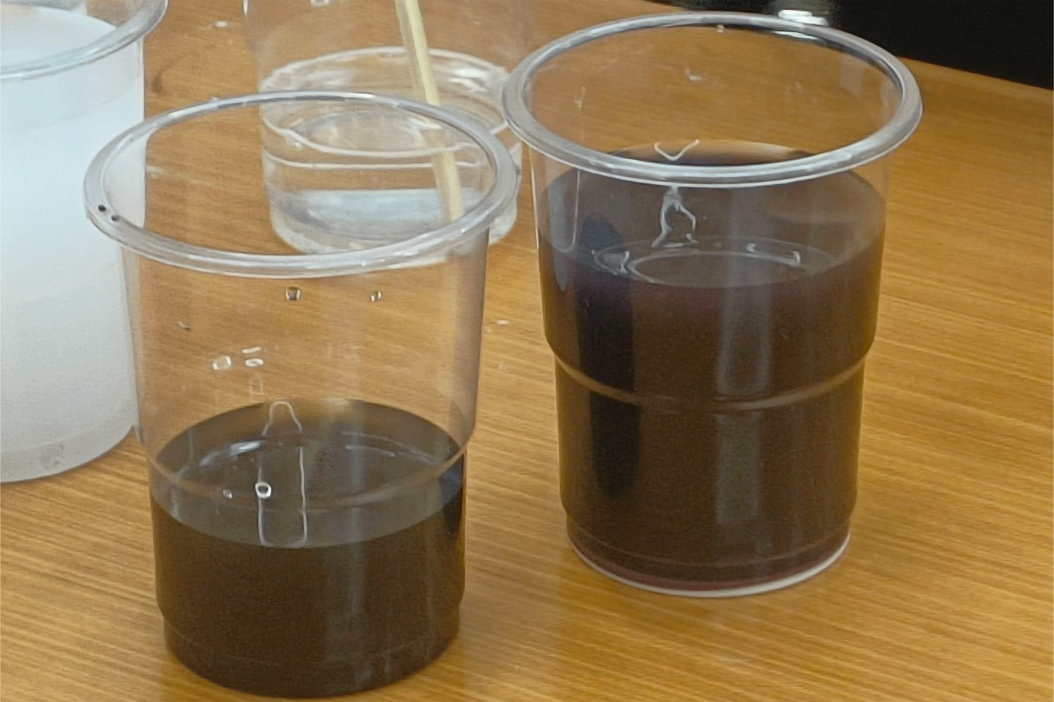 活动开始前,化协理事长蒋依欣带领社团理事提前准备实验材料和相关器材,在QQ群及空间说说发送活动预告,确保会员知晓此次活动内容。活动期间,会员们自行分组领取相关实验材料,在化协理事丁芸讲解完实验步骤和原理之后,会员们亲自动手操作,体验碘钟实验与制作护手霜的趣味。在制作护手霜的实验中,会员们先将橄榄油、甘油与乳化剂混合,搅拌均匀后加入适量清水并继续搅拌,直至溶液变为乳白色粘稠液体,就完成了护手霜的制作。在碘钟实验中,会员们依次将淀粉溶液、碘化钾溶液、酸性过氧化氢溶液倒入同一容器中,观察溶液由无色变为黑色。