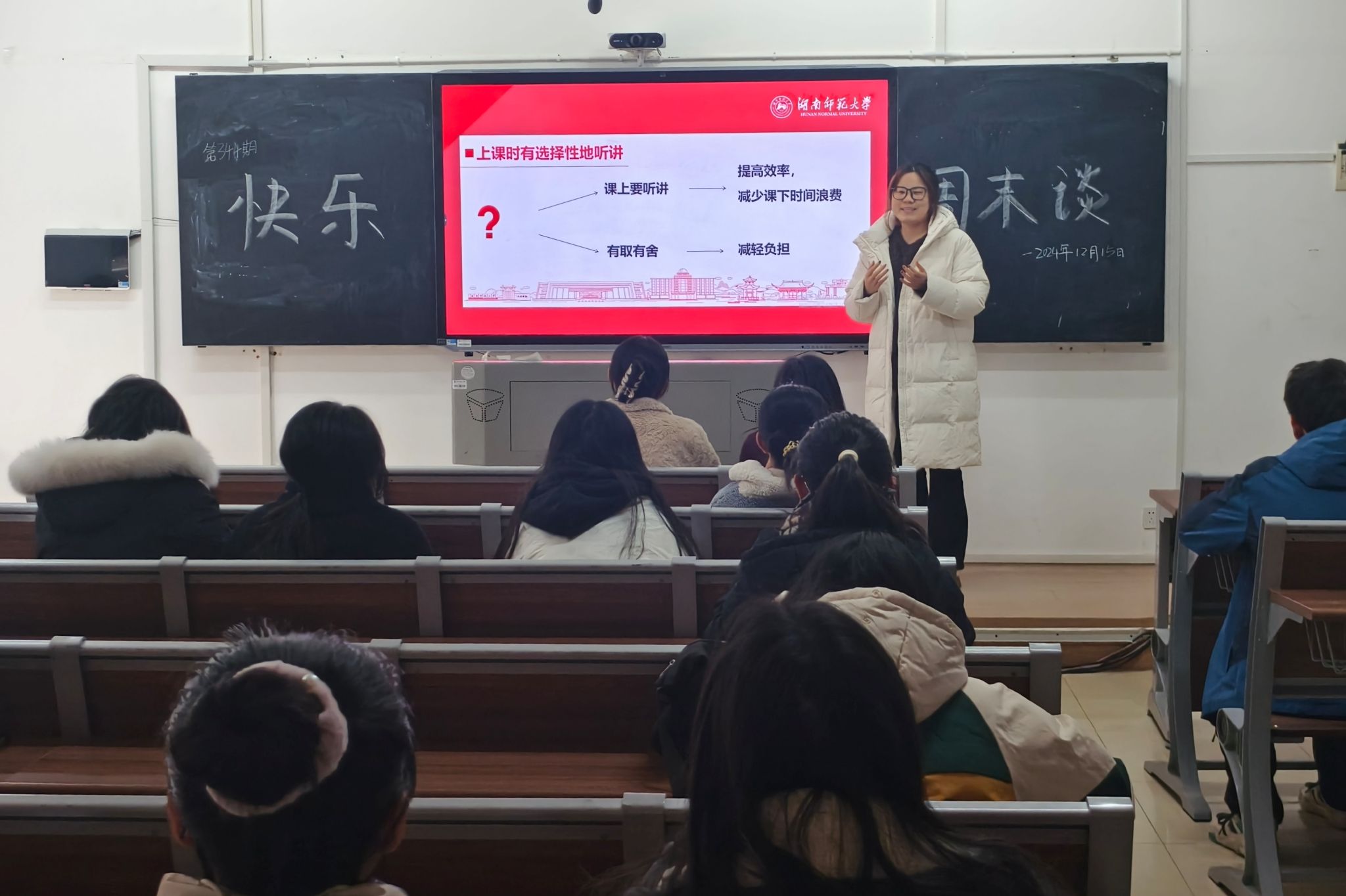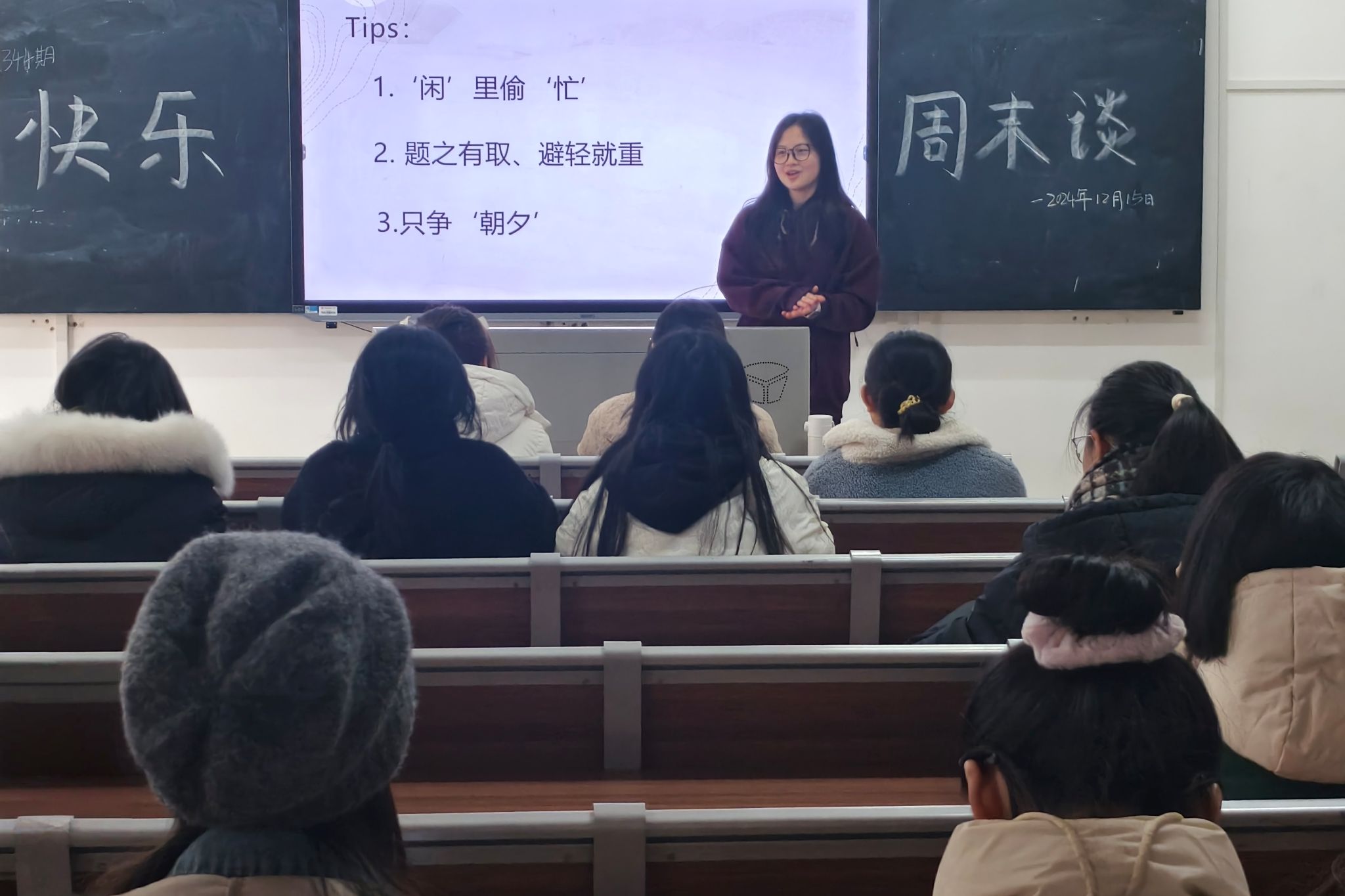 (通讯员 刘佳瑞)12月15日上午,威尼斯432888cam学生会办公室在化工楼117教室开展了第344期快乐周末谈活动,此次快乐周末谈邀请的嘉宾为2301班罗佳铭,2302班谭伟维,2306班邵菁逸,她们分别分享自己的期末复习备考或日常学习方法技巧,助力同学们顺利完成期末考试。