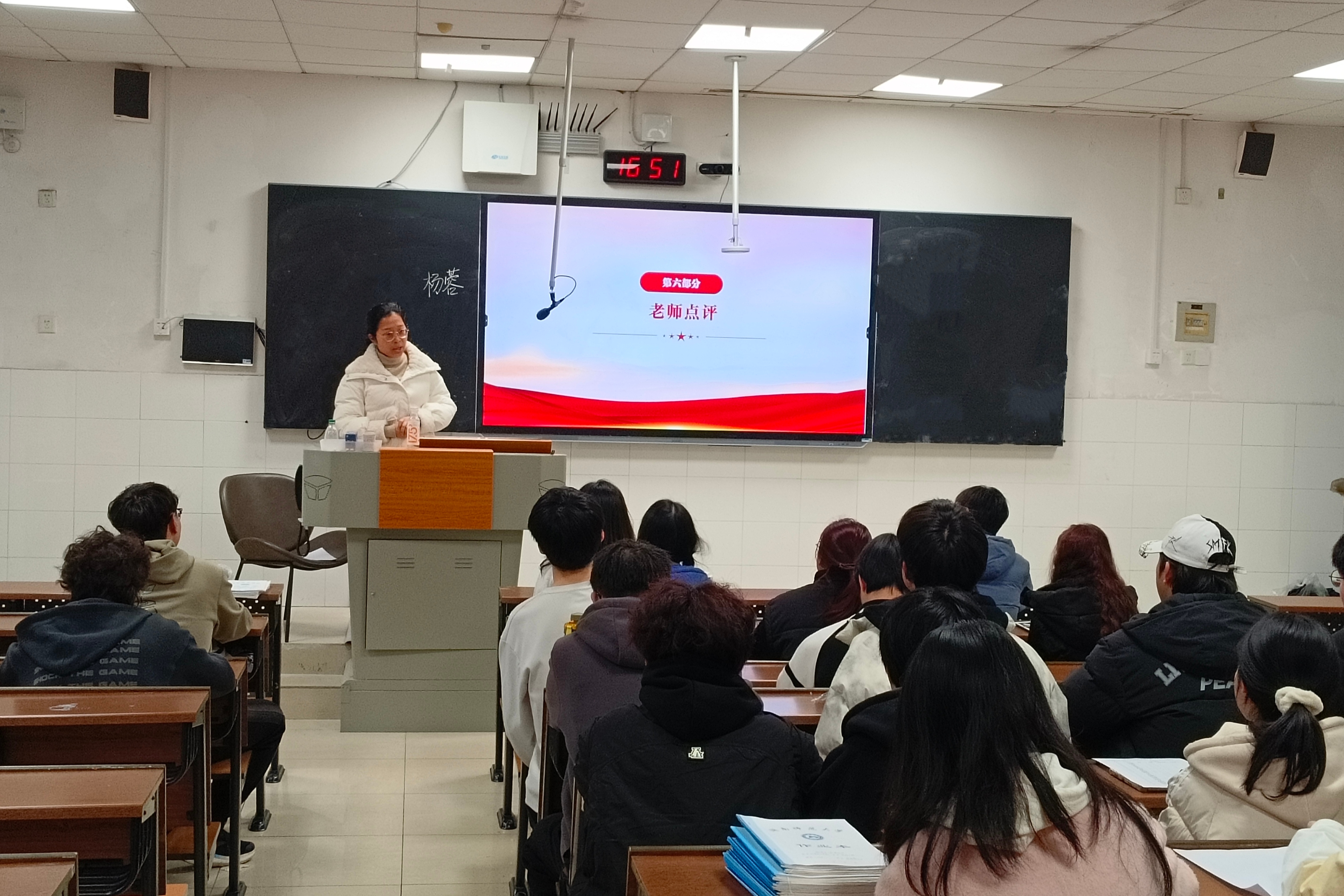 会议伊始,滑子曦带领大家学习了习近平总书记五四重要寄语精神等内容,针对支部委员任职情况做出深入客观的通报与反思,查找差距和不足。在团员自我评议环节中,每位支部成员依次上台对个人思想和活动参与情况等方面进行总结和汇报,以线下投票的方式,公平公正的选出较为优秀的团员。班导杨蓉对此次会议进行了点评,肯定会议的开展情况,同时对支部成员提出了一些建议。