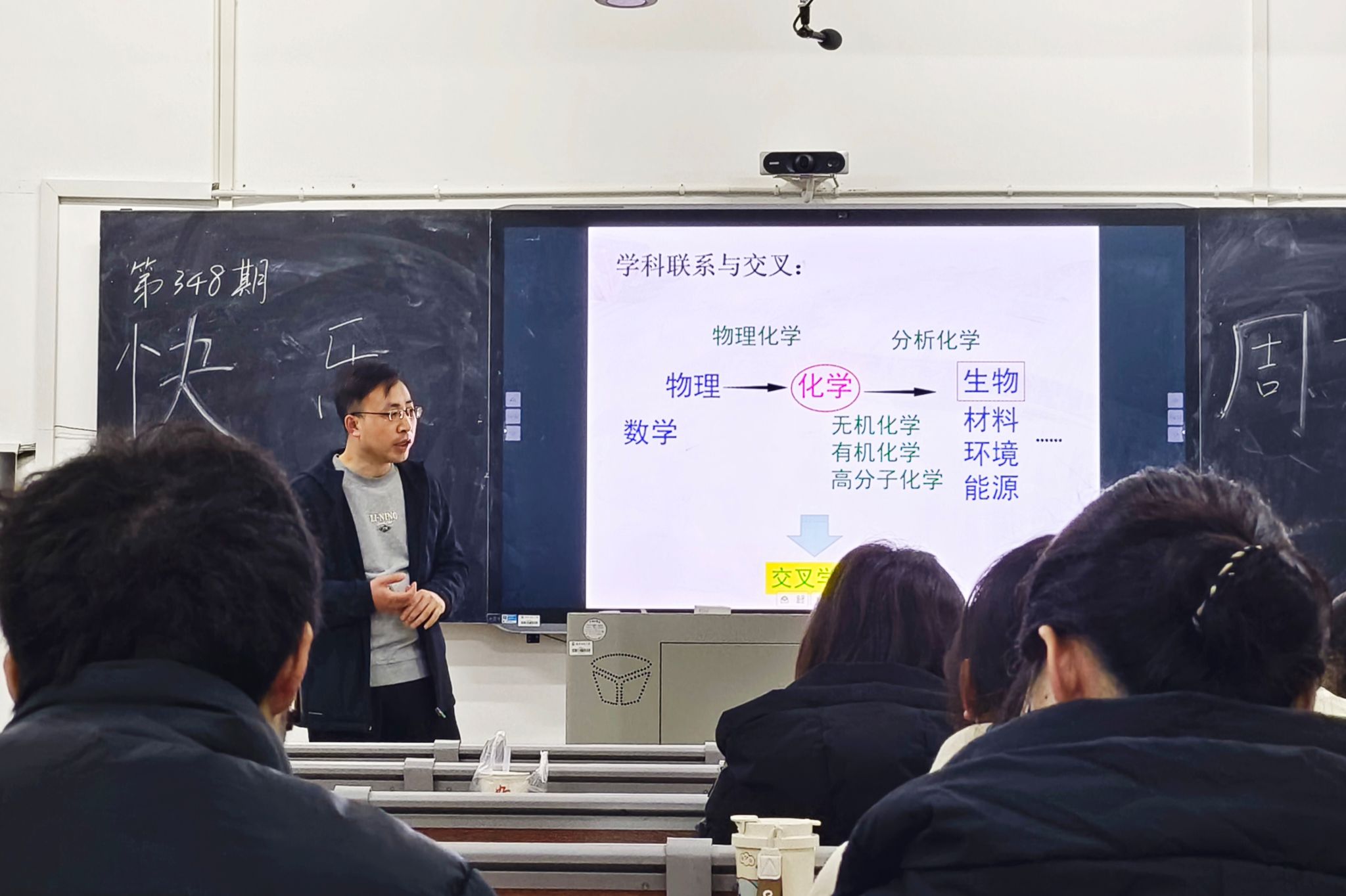 活动伊始,郭宾抛出“如果毕业即失业,那还要上大学吗”的问题,迅速引发同学们对“我的大学生活怎样度过”的思考。他分享自身经历,作为70后,在社会转型期凭借不懈努力成为大学教授,借此告诫同学们要在不确定性中持续进化,同时要立足学科专业与科学问题,了解产业导向,在科技浪潮中保持定力。