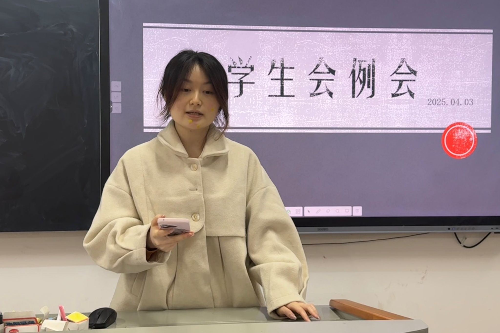 会议伊始,各部门依次汇报近期的工作情况以及未来的工作计划。其中办公室已完成月报表和月通讯稿的制作;健服部已完成女生节线下活动微推的制作;权益部已完成化工院权益问题的调查和“同心追梦”助学金的申报;文体部已完成太极拳比赛预热通知和说说的发布;学发部已完成“铸牢中华民族共同体意识建设伟大祖国,建设美丽家乡”演讲比赛及获奖名单的公示;宣传部已完成多篇说说和微推的制作。主席团成员朱茜雨提醒学生会所有成员学生会没有行政职能,因此在所上交的材料中不能有寝室卫生检查和课堂考勤的相关内容。同时她也通知各个部门可以着手准备活动总结材料。