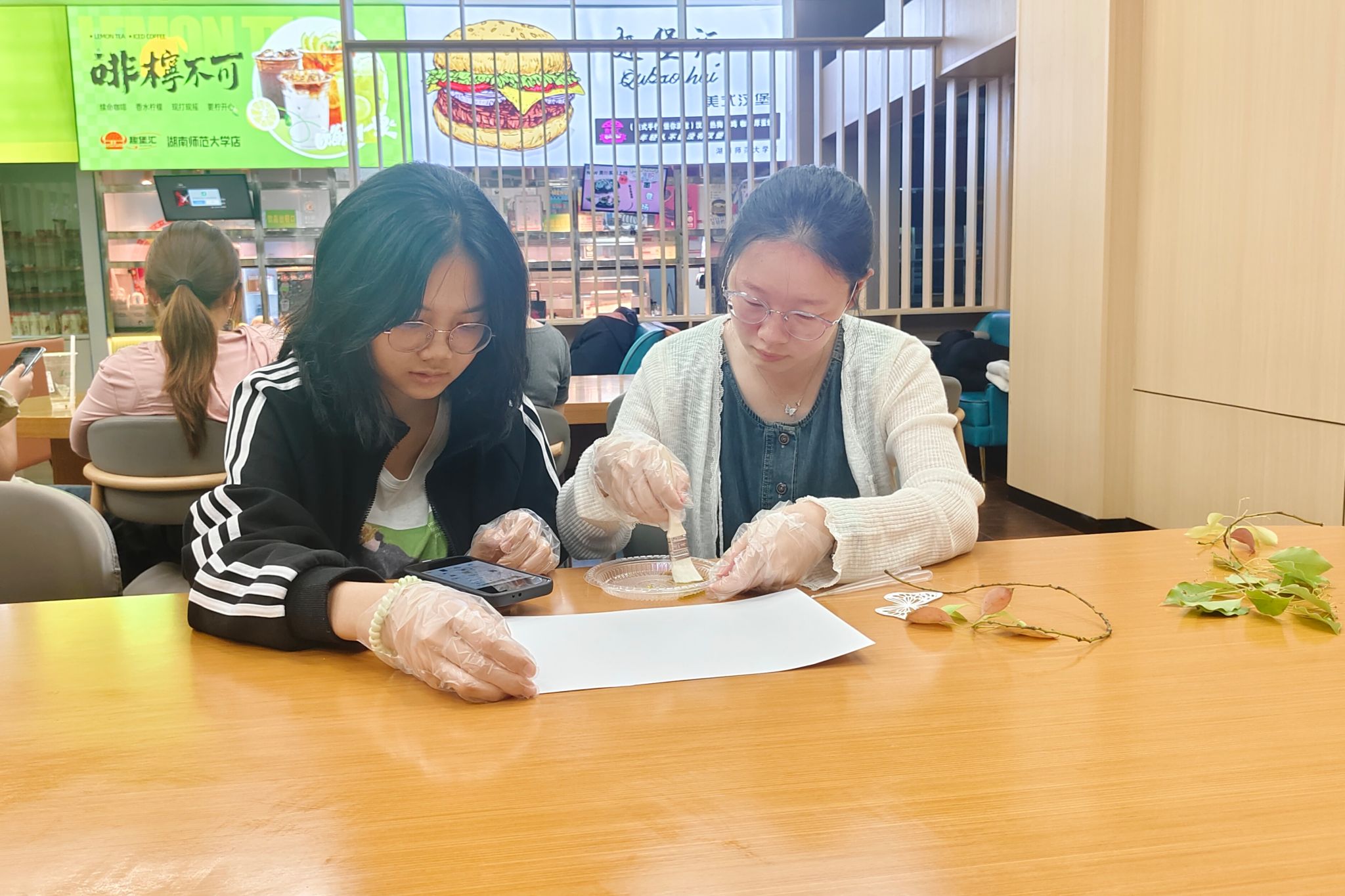 活动伊始,化协负责人蒋依欣向会员们详细讲解了古法蓝晒印刷实验的原理。蓝晒法基于铁离子在紫外线照射下发生的氧化还原反应,在该过程中,原本呈浅黄色的感光剂在接触光线后会发生化学变化,而被模板遮挡的部分因未受光照,不会产生这种变化,从而在最终成像时留下模板的图案。会员们在理解原理后,便开始动手实践。他们按比例配制感光剂并均匀涂抹在纸张上,再把准备好的各种图案模板覆盖其上,放置在阳光下曝光。经过一段时间的曝光后,将纸张放入清水中冲洗,原本空白的纸张上逐渐显现出各样的图案。