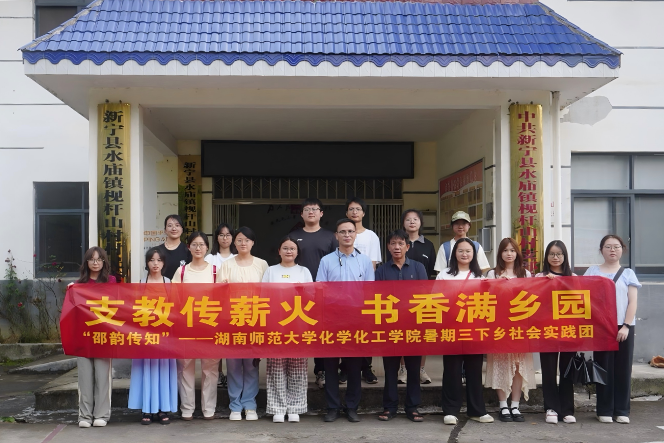 (通讯员 袁纯婉 段叶蕤)7月7日上午,威尼斯432888cam化学与化工学院“邵韵传知”三下乡实践队赴邵阳市新宁县水庙镇枧杆山村开展暑期三下乡实践活动开营仪式,以“支教传星火,书香满校园”为口号推进活动。枧杆山村村支部书记杨忠祥,实践队指导老师周文理以及全体实践队成员参与此次仪式。
