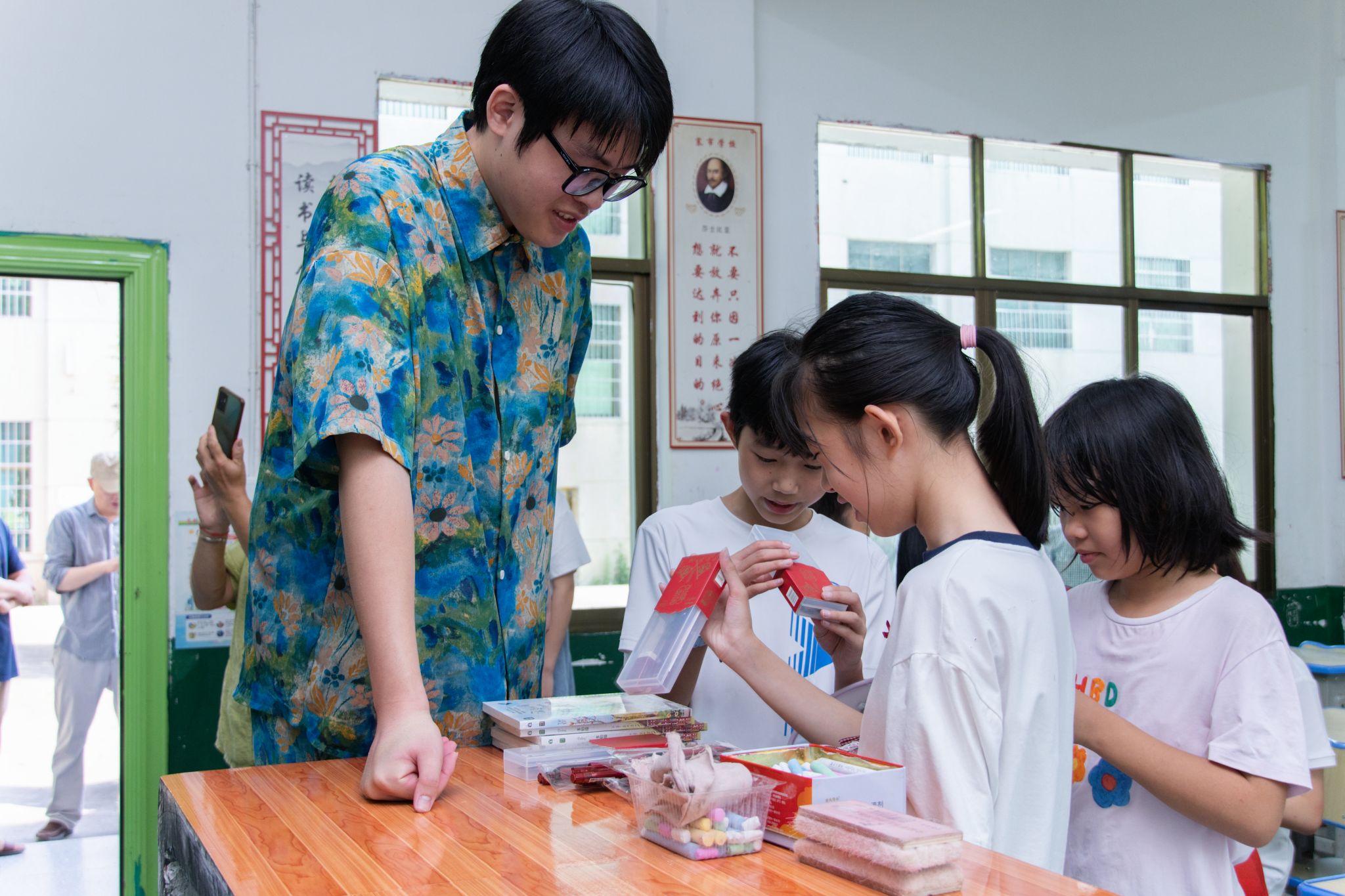 教学组队员根据报名学生年龄及学习需求分设两个班级实施分层教学,开设趣味课堂、素质拓展、科普实验等特色课程,并建立全时段守护机制:午休期间由团队成员轮流值守,负责纪律管理及作业辅导;放学时段设立“护学岗”,团队成员护送学生至接送点,并向家长实时反馈离校情况。