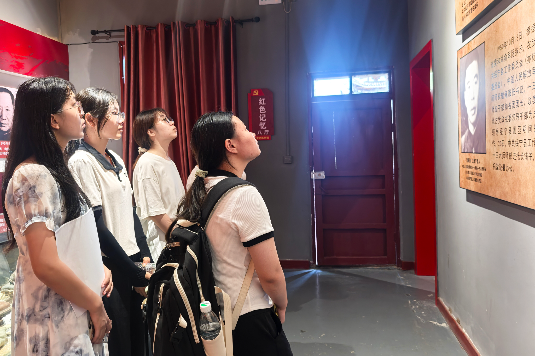 交流结束后,唐旭带领实践团走访绥宁党史陈列馆、寨市古建筑群及中国工农红军第七军指挥所旧址。走访期间,讲解员讲解红七军攻占寨市、解救群众、辗转征战等革命往事,实践团成员借此明晰当地革命历史进程,切实感受当地红色文化的厚重底蕴。