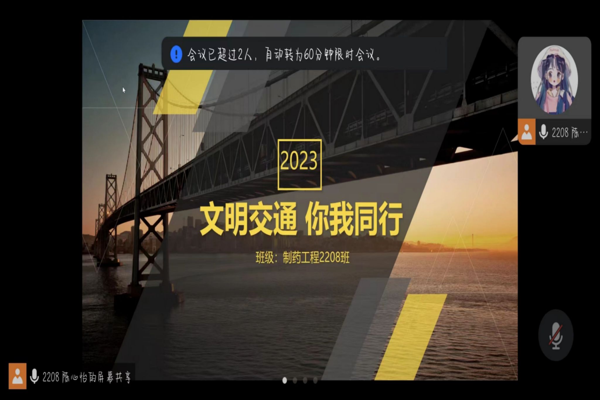 (通讯员 王天一)11月30日19时,威尼斯432888cam2208班在线上开展主题为“文明交通,你我同行”的班会。此次班会由学习委员陈心怡主持。此次安全教育班会旨在通过播放相关视频以及宣讲PPT来提高同学们的交通安全意识。