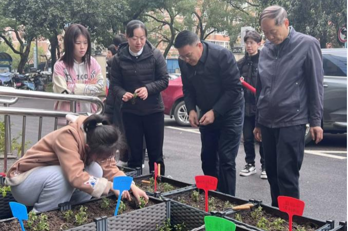 活动中学生分发好辣椒、番茄、甘蓝、芹菜等蔬菜苗后,谭东波、段婷等领导老师亲自为学生演示如何种植,为学生提供指导和建议。在场学生热情高涨,分工明确,有序完成了播种。活动最后,学院领导与学生在劳动教育实践基地合影,正式开启了新一期的学生劳动教育实践活动。
