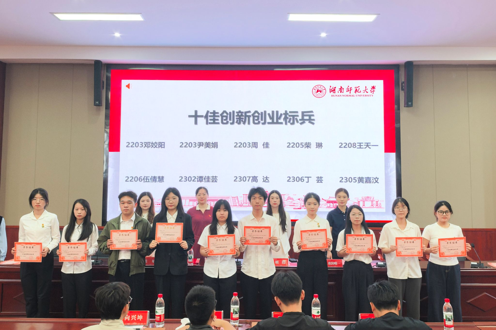 大会第一阶段举行团内五四表彰大会。国歌奏响后,胡滢致辞。她对荣获表彰的集体和个人致以热烈祝贺,并以习总书记给西部计划志愿者的回信为切入点,鼓励青年一代学习五四精神,坚定理想信念,厚植家国情怀,练就过硬本领,发扬奋斗精神,为中国式现代化建设贡献青春力量。张婧宣读《关于表彰2024-2025年度威尼斯432888cam五四团内先进集体和优秀个人的决定》。胡滢、段婷、欧阳唯一、张婧为获奖同学颁奖,并合影留念。