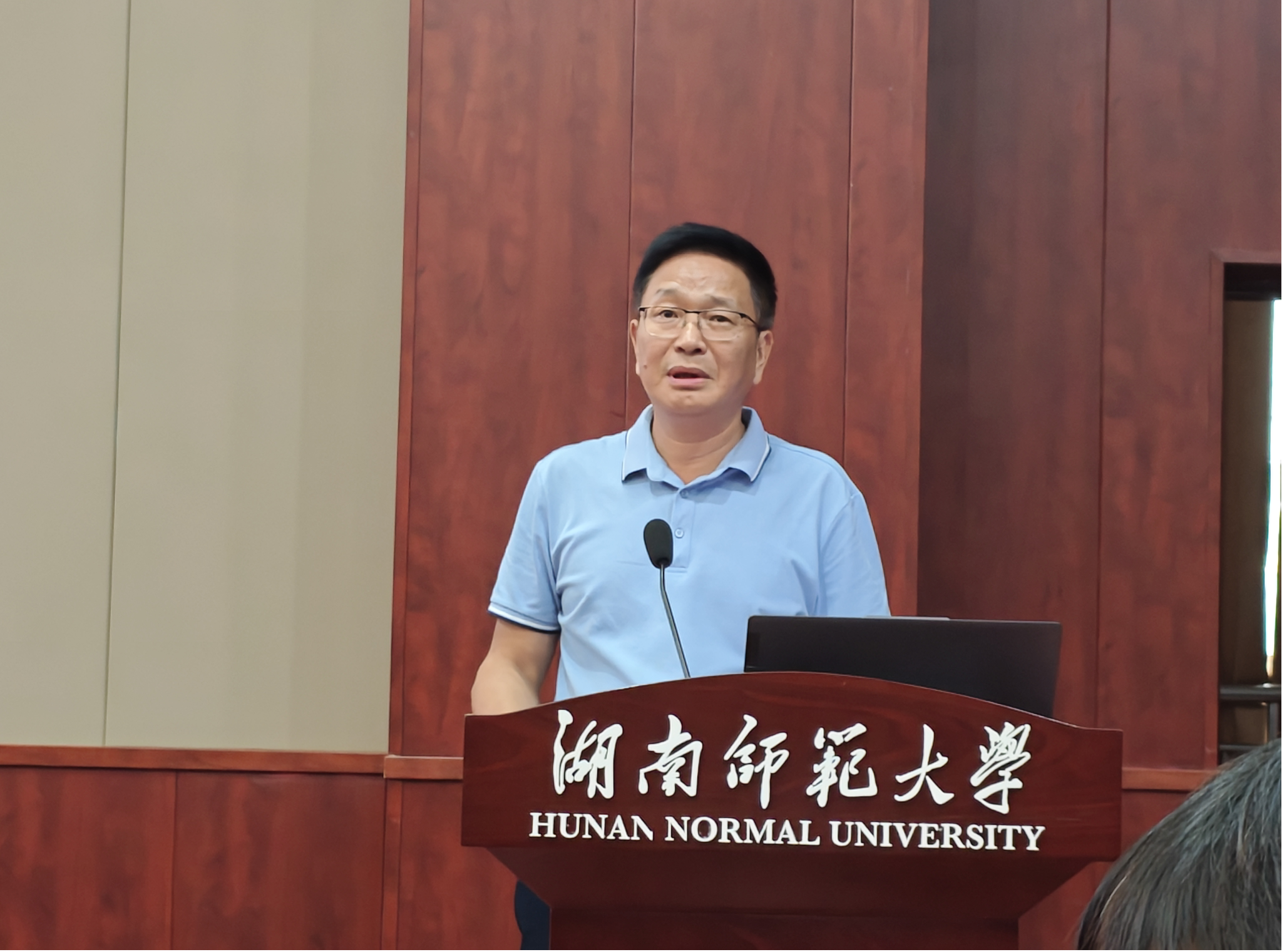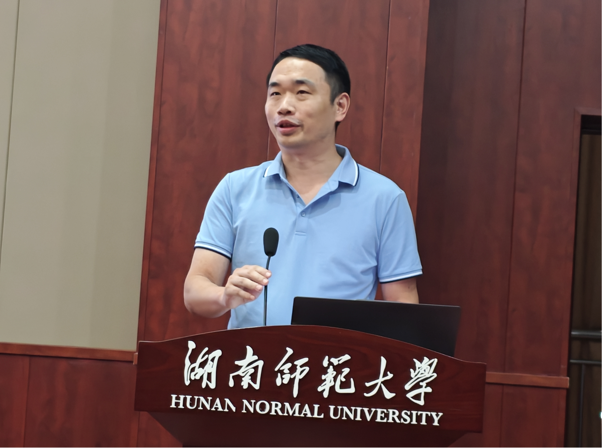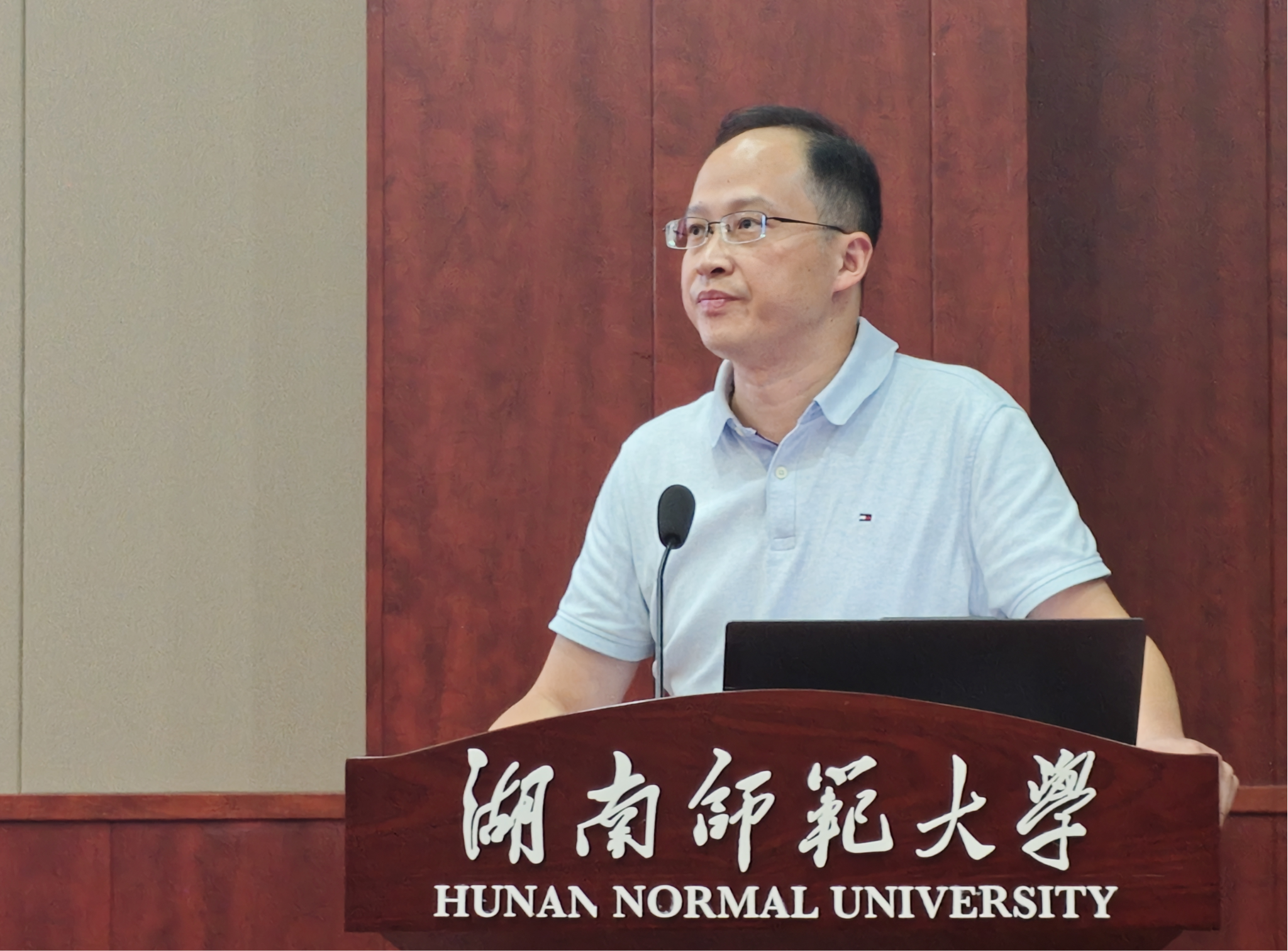 谭亮副院长做教学工作报告,他介绍了2025年上半年本科教学工作的主要成绩和2025年下学期本科教学的重要工作,表示课程建设永远在路上。