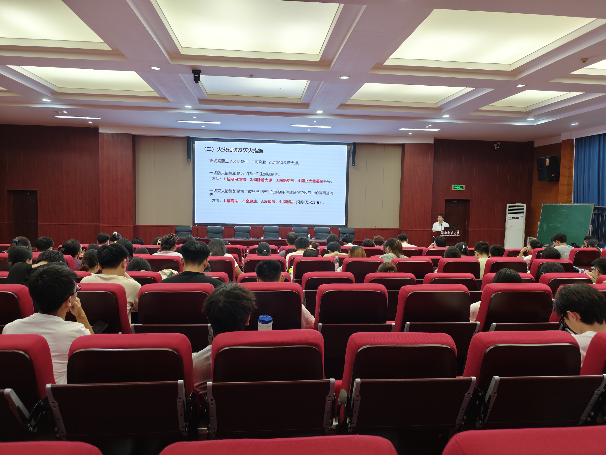 宋春红从消防、实验室安全、防骗防毒、交通及防食物中毒等方面做强调,并通过展示真实院校发生的安全事故,警示学生在实验过程和生活中时刻铭记,生命至上,安全发展,共同构建安全和谐校园。