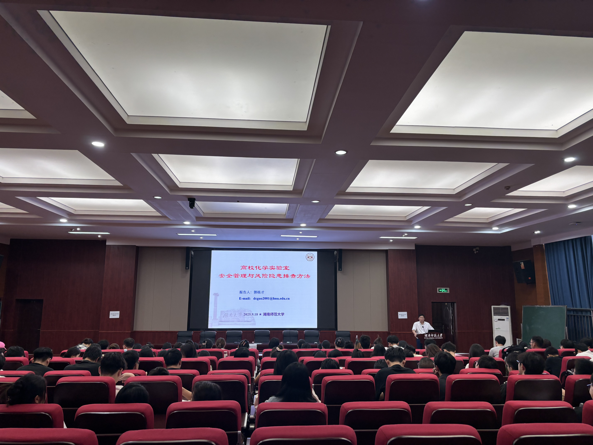 2025年9月18日下午,湖南大学威尼斯432888cam国家级实验教学示范中心主任郭栋才教授受邀来威尼斯官网,在化学楼达嘉维康报告厅开展安全教育讲座。讲座由研究生办唐建如老师主持,2025级200余名研究生新生参加了此次讲座。