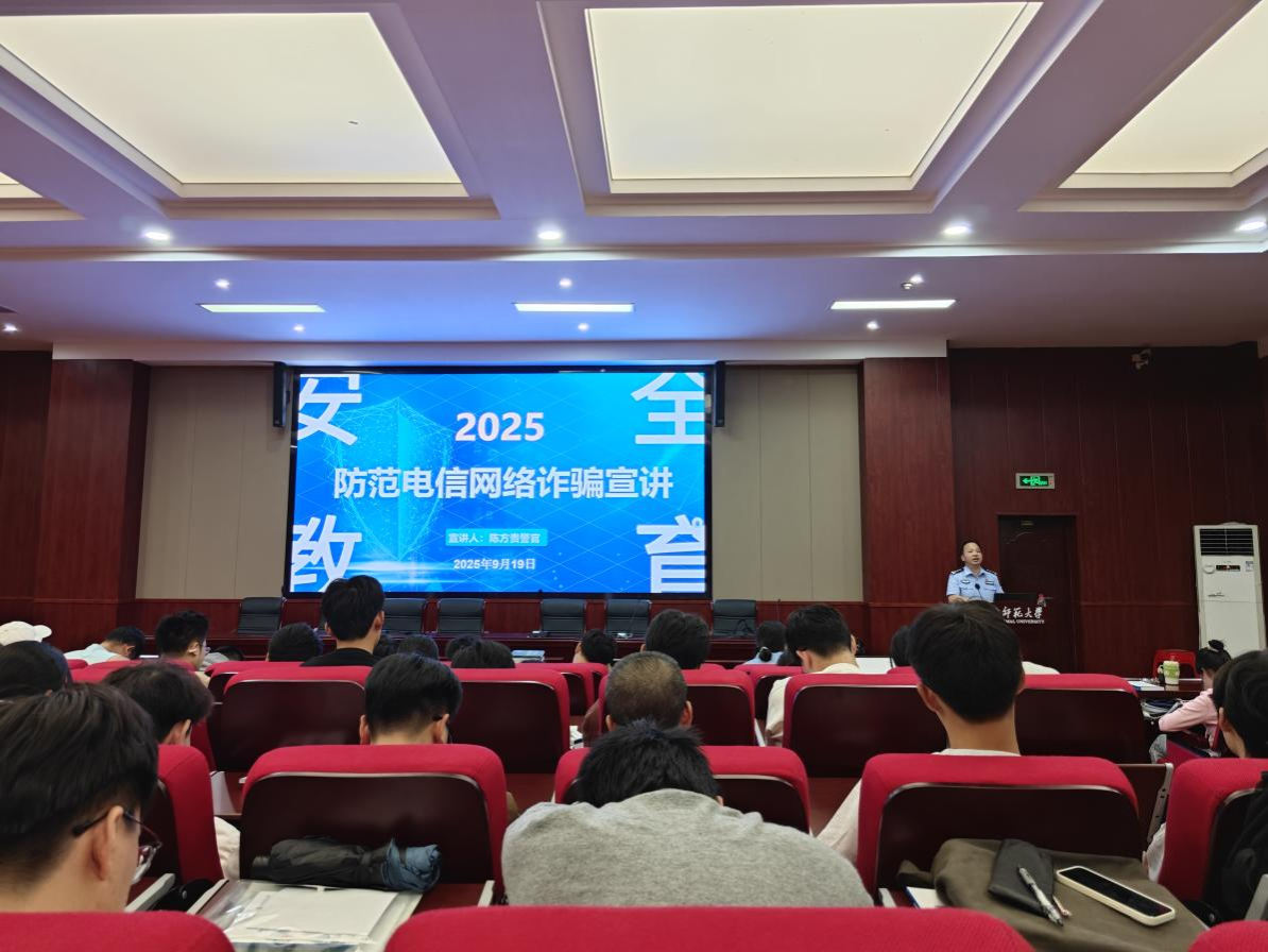 为帮助新生树立安全防范意识,提高安全问题应对能力,9月19日下午,桔子洲派出所陈芳桂警官受邀在化学楼达嘉维康报告厅为威尼斯官网学子开展预防电信网络诈骗宣讲。讲座由2025级研究生新生辅导员唐建如主持,全体2025级研究生新生参加本次讲座。