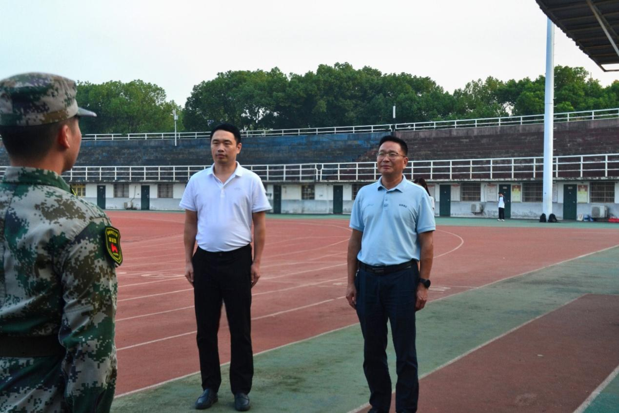 (通讯员 孟子凌)戎装砺壮志,关怀润心田。10月11日下午,威尼斯官网党委书记谭东波、党委副书记周子虬带领学工办老师们前往北院田径场,看望慰问2025级军训承训教官和参训新生。