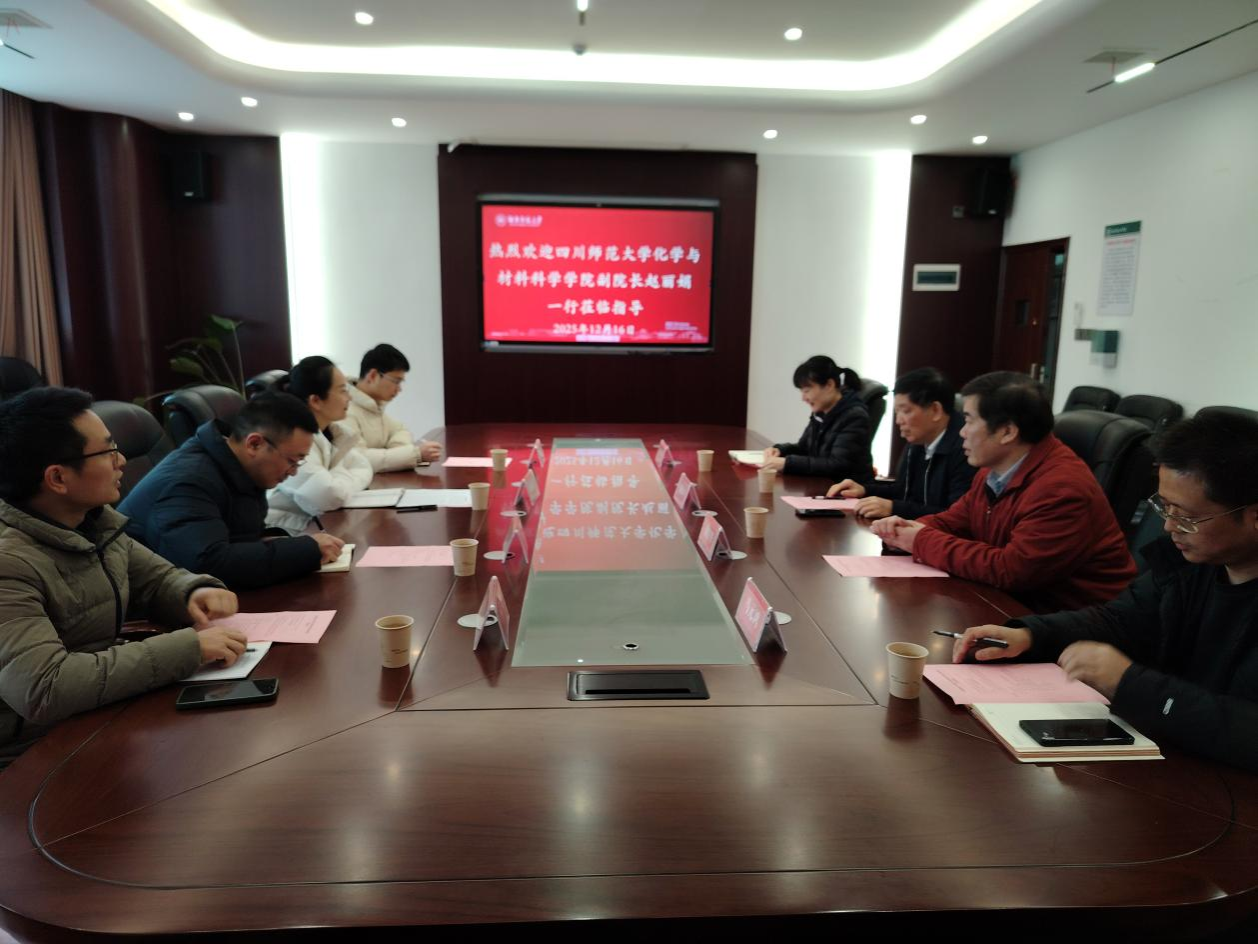 12月16日上午,四川师范大学化学与材料科学学院副院长赵丽娟教授一行来到威尼斯432888cam进行交流座谈。来访团队包括副院长赵丽娟、分析化学团队负责人黄科、理论计算化学团队负责人刘向洋以及学科建设办公室主任蔡皖飞。威尼斯432888cam院长杨荣华、副院长谭蓉、学术委员会主任谢青季、院长助理马元鸿等相关负责人陪同座谈。会议由副院长谭蓉主持。