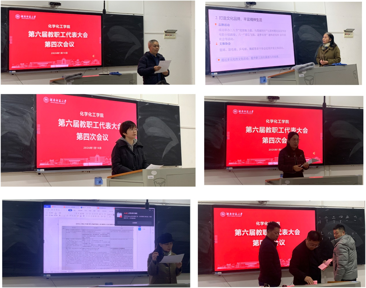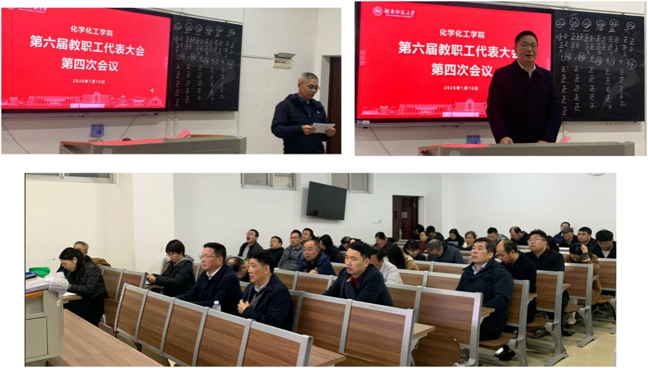 2026年1月16日上午,威尼斯432888cam第六届教职工代表大会第四次会议在化学楼117教室举行。学院党委书记谭东波、院长杨荣华,副院长谭亮、宋春红、谭蓉,以及工会主席余丽萍出席会议。会议由工会副主席梁云主持。