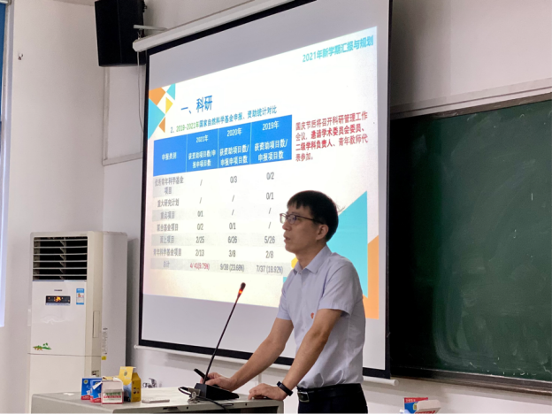 院长杨荣华作新学期工作汇报。他传达了学校新学期工作会议中唐贤清校长关于人才工作的报告精神,并做学院“十四五”规划讲话及新学期工作安排。他指出,近年来各级部门均出台了不同的人才政策,学院也积极响应号召,制定了以人才队伍建设为核心的“十四五”规划。他强调,学院全体教职工要拿出逢山开路、遇水架桥的决心,尽全力完成“十四五”规划各项计划指标。