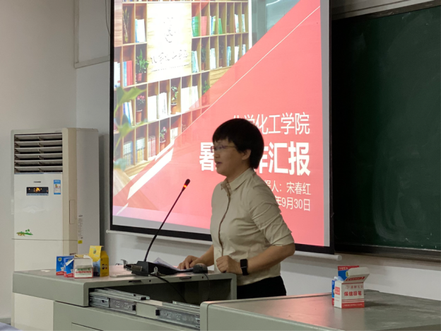 副院长宋春红作暑期工作汇报,她表示,今年来学院在硬件设施提质改造方面多有作为,为今后的人才建设工作打下坚实基础。她希望教师们能够充分利用、发挥已有条件,为学院发展添砖加瓦。