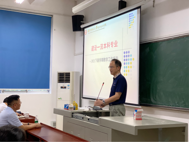 副院长谭亮作教学工作报告。他表示,上半年各项教学工作圆满完成并取得优秀成果,接下来将开展以一流专业建设为核心各项工作。他指出,上半年考学生,下半年考老师,大家要铆足干劲,趁势而上,在教育教学工作新阶段发挥自己的力量。