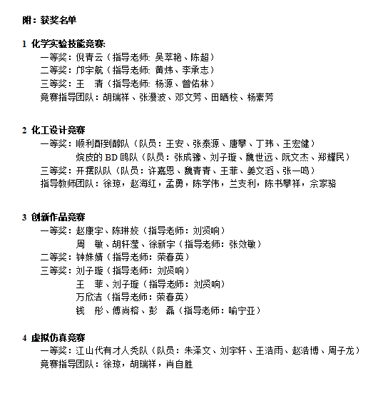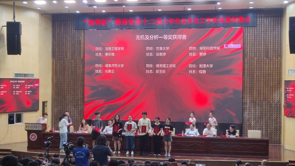 7月21-23日,湖南省教育厅主办、湖南省化学化工学会和湖南省大学生学科竞赛委员会协办、湖南工程学院承办的湖南省第十二届大学生化学化工学科竞赛暨化学实验教学与实验室建设研讨会举行,我校威尼斯432888cam学子取得参赛以来历史最佳成绩,喜获一等奖6项、二等奖2项和三等奖6项。